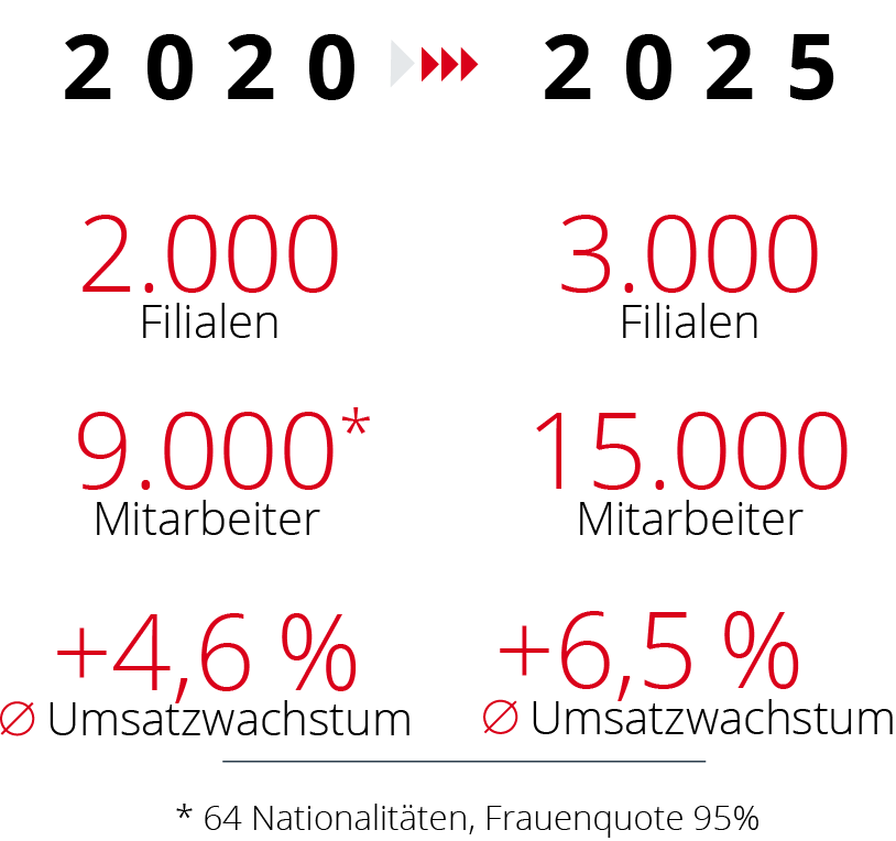 - Über 2.000 Filialen in Mitteleuropa (Deutschland, Österreich, Italien, Slowenien, Tschechien, Kroatien und Polen), davon rund 1.300 Filialen in Deutschland